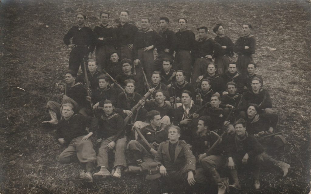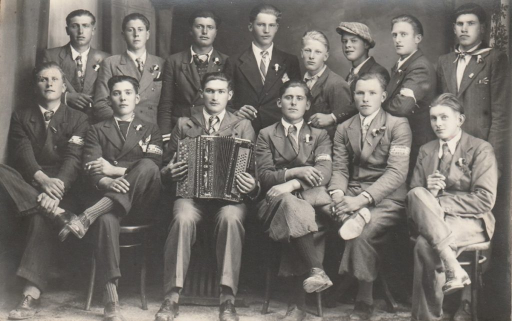 Albino Scopel e ragazzi della classe 1922 festa dopo la visita medica del servizio militare anni 1940.